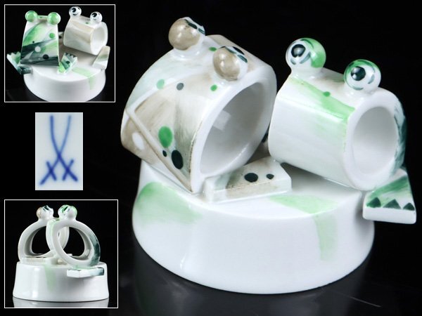 > 魁◆本物保証 希少 マイセン 磁器 ペーターシュトラングデザイン カエルの置物 グリーン×ブラウン ペーパ-ウェイト