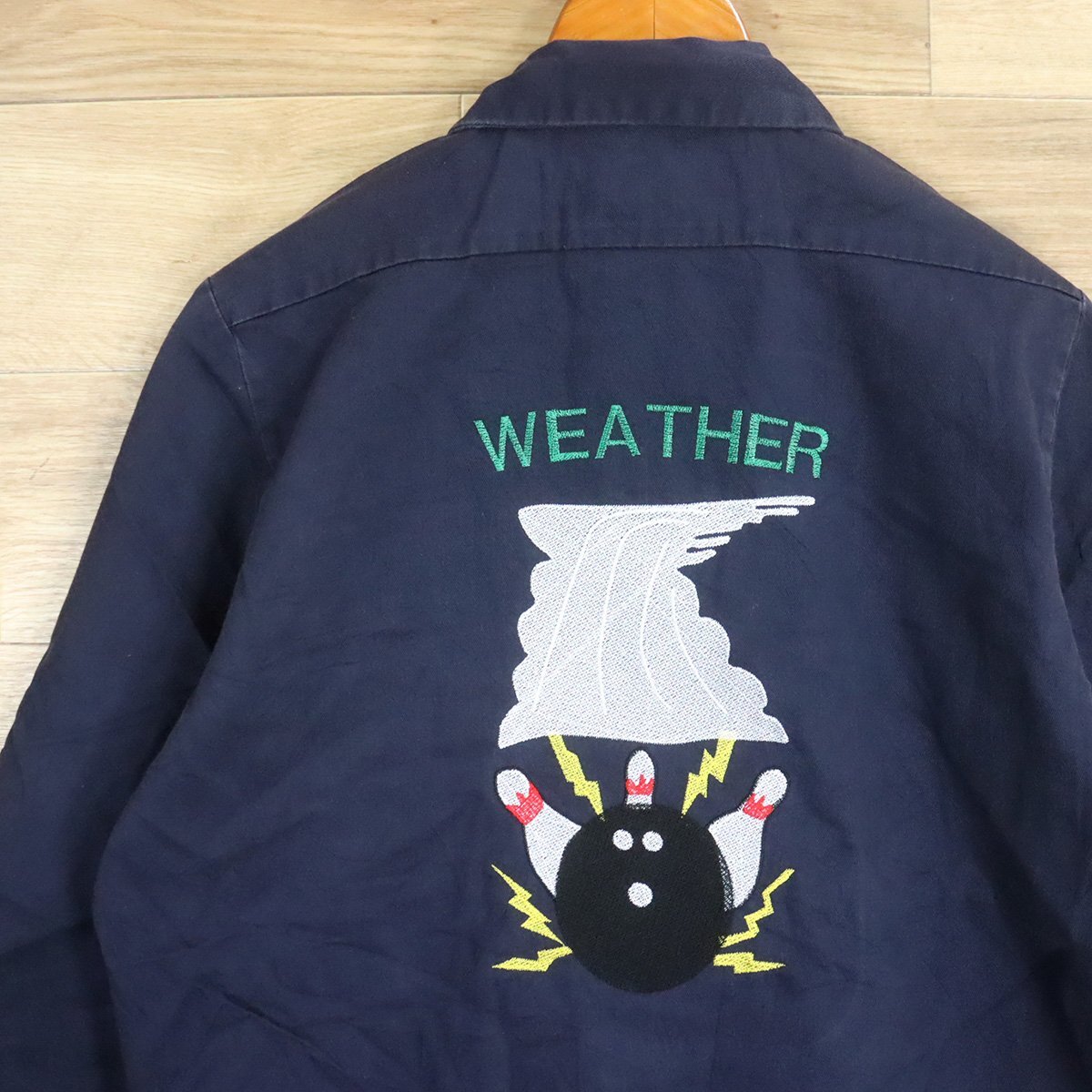 > J11T/D10.27-1 アメリカ古着 Cintas シンタス ワークシャツ ワッペン M メンズ バック刺繍 ボーリング WEATHER