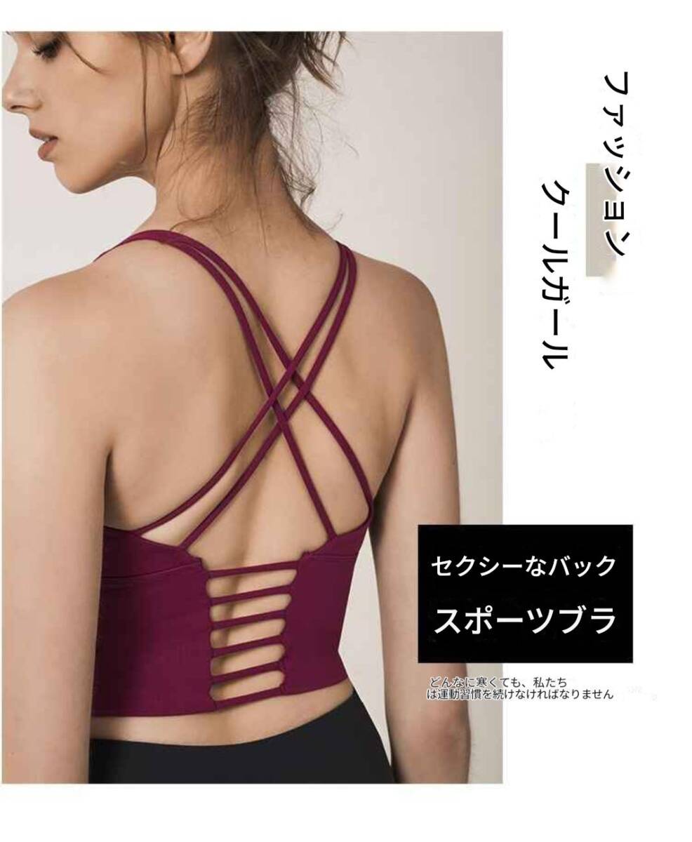 - バーガンディ クロスストラップ スポーツブラ ヨガ
