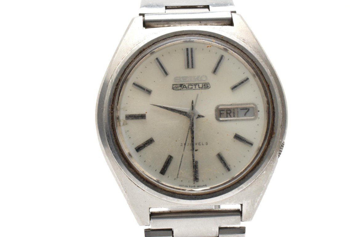 - 稼働品 SEIKO 5 ACTUS セイコー アクタス 自動巻き ラウンド 腕時計 メンズ デイデイト シルバー 7019-8010
