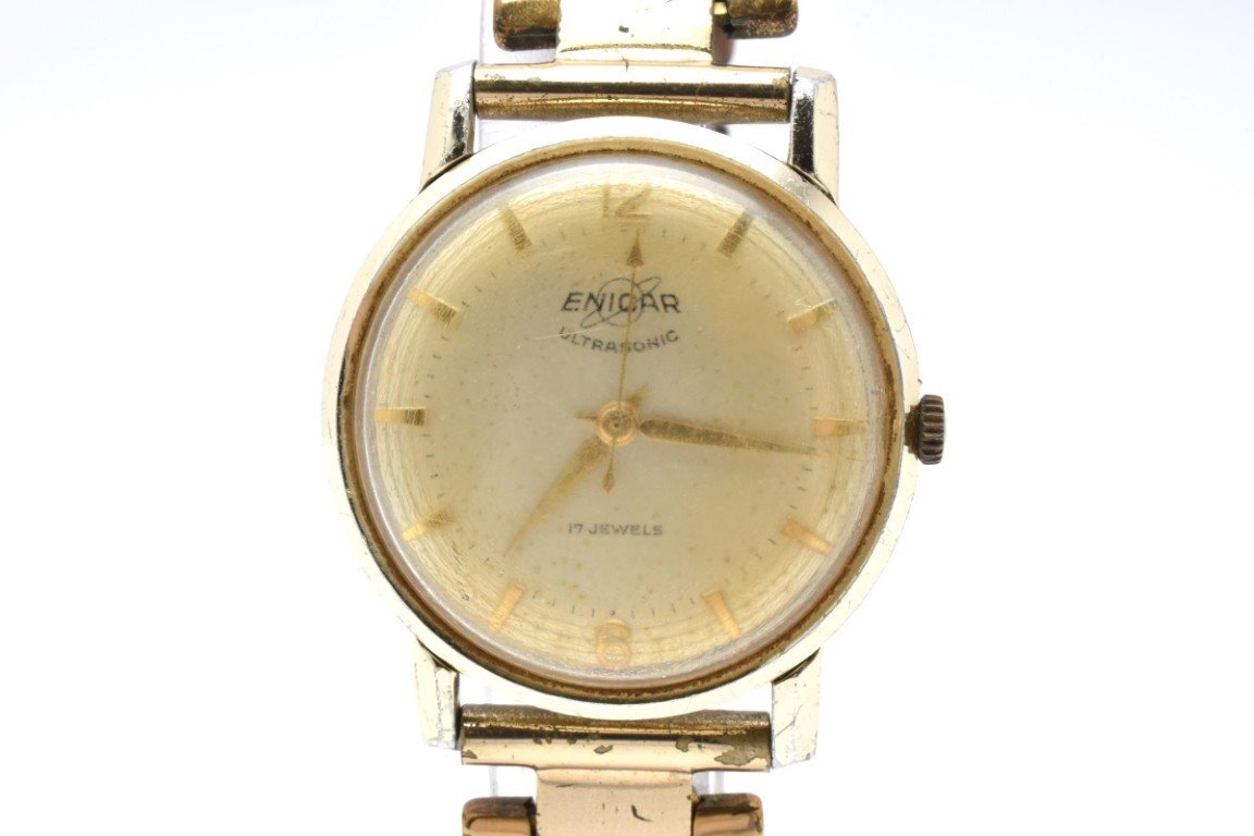 - ENICAR エニカ 腕時計 メンズ 手巻き 蛇腹ベルト ゴールド シャンパンゴールド文字盤 ラウンド 3針 17ジュエル