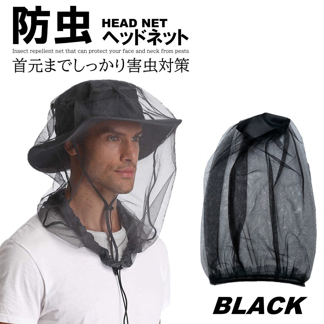 - 黒色 防虫ネット 虫の侵入を阻止 顔 頭 網 ネット モスキートネット 蚊帳 ヘッドネット 防虫ハット 防虫