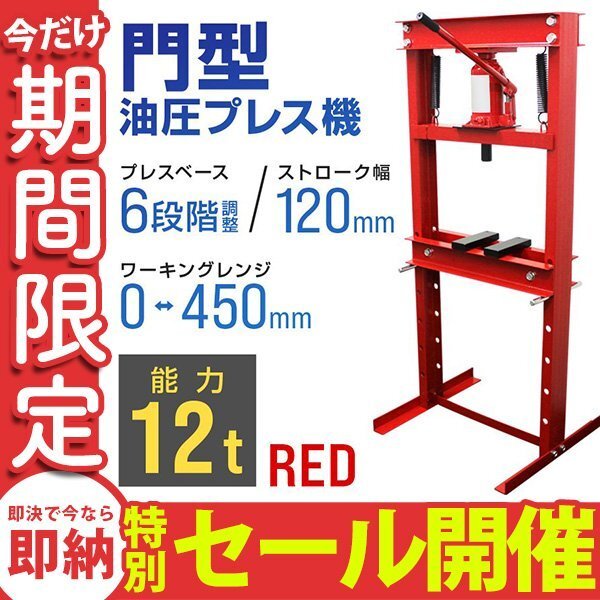 > 【数量限定セール】門型 油圧プレス 12t 6段階調整 作業幅0~450mm ショッププレス 自動車 バイク 整備 板金 歪み修正 ベアリング脱着