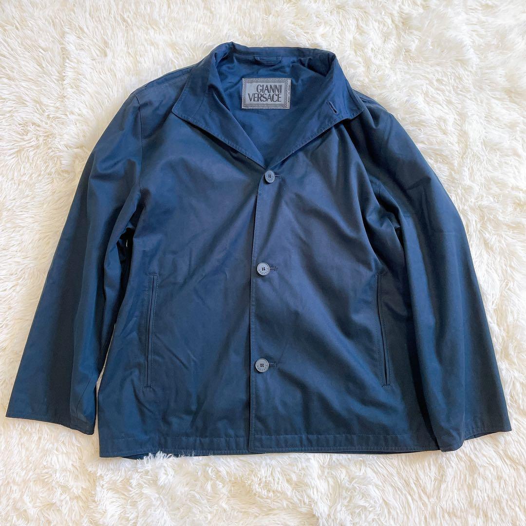 - GIANNI VERSACE ジャンニ ヴェルサーチ ヴィンテージ ブルゾン ネイビー 50イタリア製 ロゴボタン 軽量アウター モード 高級ライン