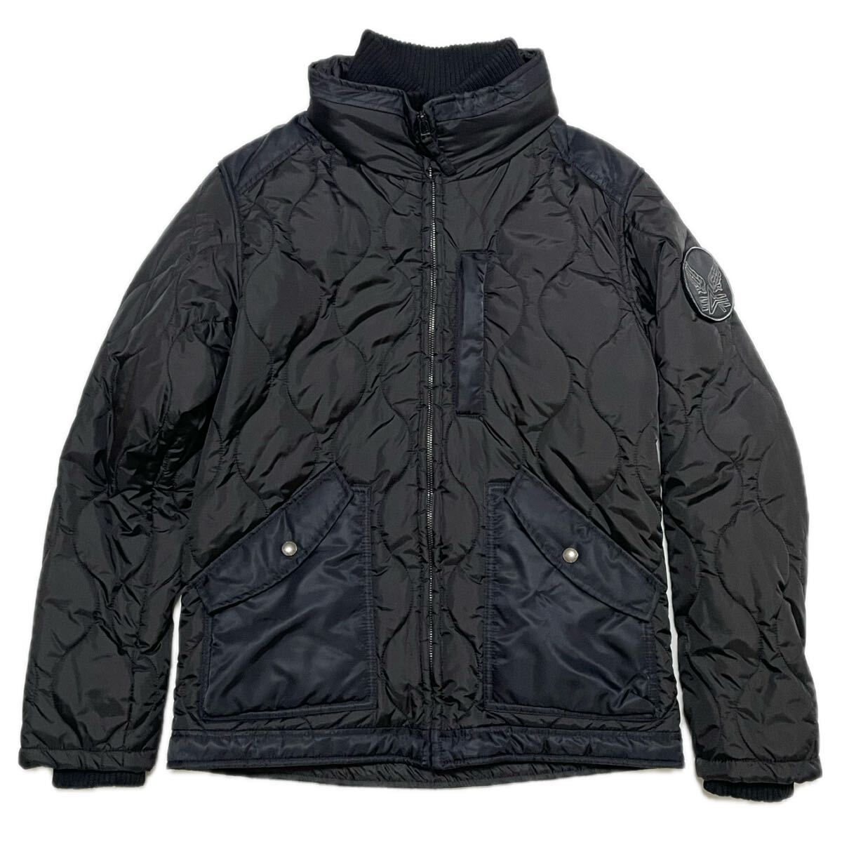 > 美品 ALPHA INDUSTRIES キルティング ジャケット ブラック Mサイズ アウター 黒 ジャケット フード アルファ