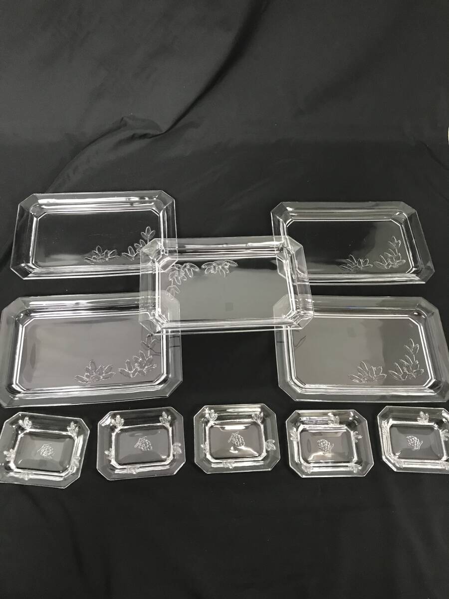 - 未使用 ガラスの角皿 10枚セット 松葉 和食器 和食 ガラス器 Japanese vintage glass rectangule plates pine cone needles 刺身 薬味
