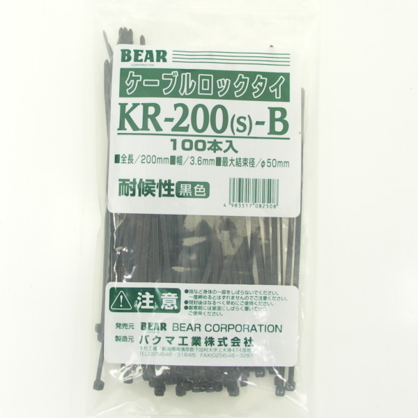 - 【新品】ケーブルロックタイ 200mm スリムタイプ 黒 耐候性 100本入 結束バンド