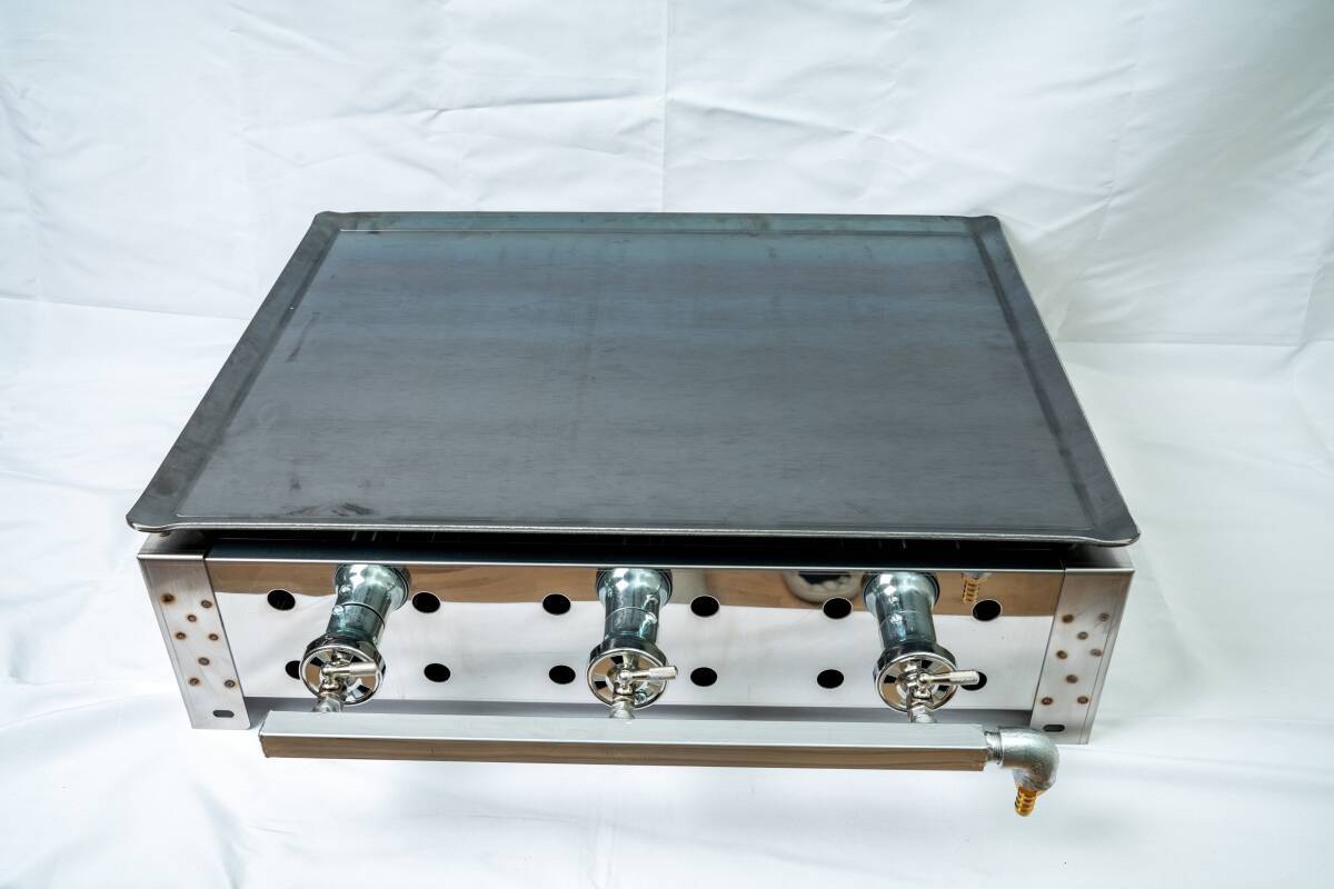 - 未使用 店舗用品 卓上 いか焼き 屋台 LPガス 幅60 奥行45 アウトドア 出店 キャンプ 3本バーナー ステンレスボディ 2025年 日本製 鉄板6mm