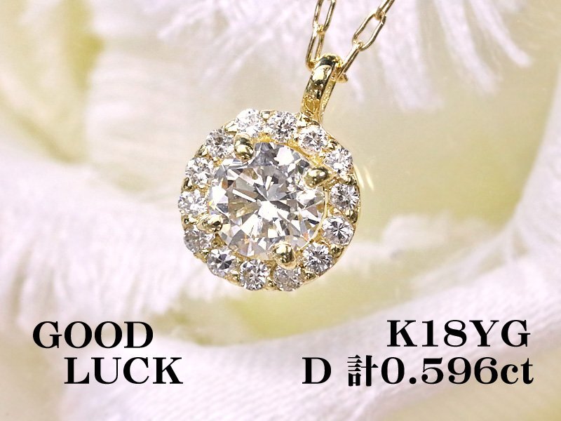 > 【新品・未使用】1円~最落無 天然ダイヤモンド 計0.596ct/一粒ダイヤ 0.456ct,K,SI-1,GOOD,GGSソーティング付,K18YG ダイヤ ペンダント