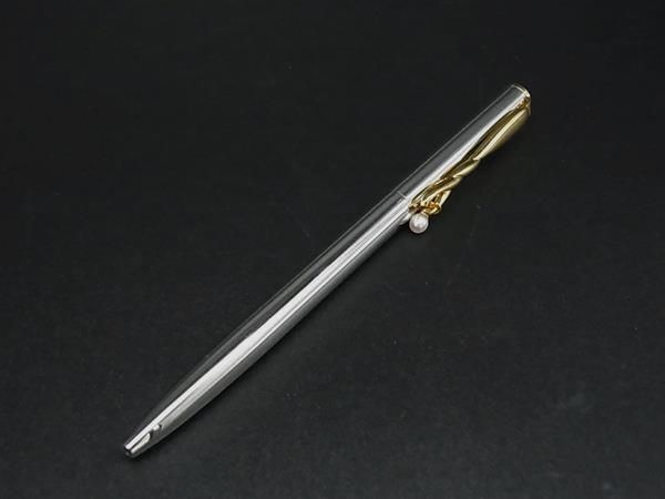 > ■新品同様■ MIKIMOTO ミキモト 本真珠 アコヤ真珠 パール 約4mm ツイスト式 ボールペン 筆記用具 文房具 シルバー系 DJ4261