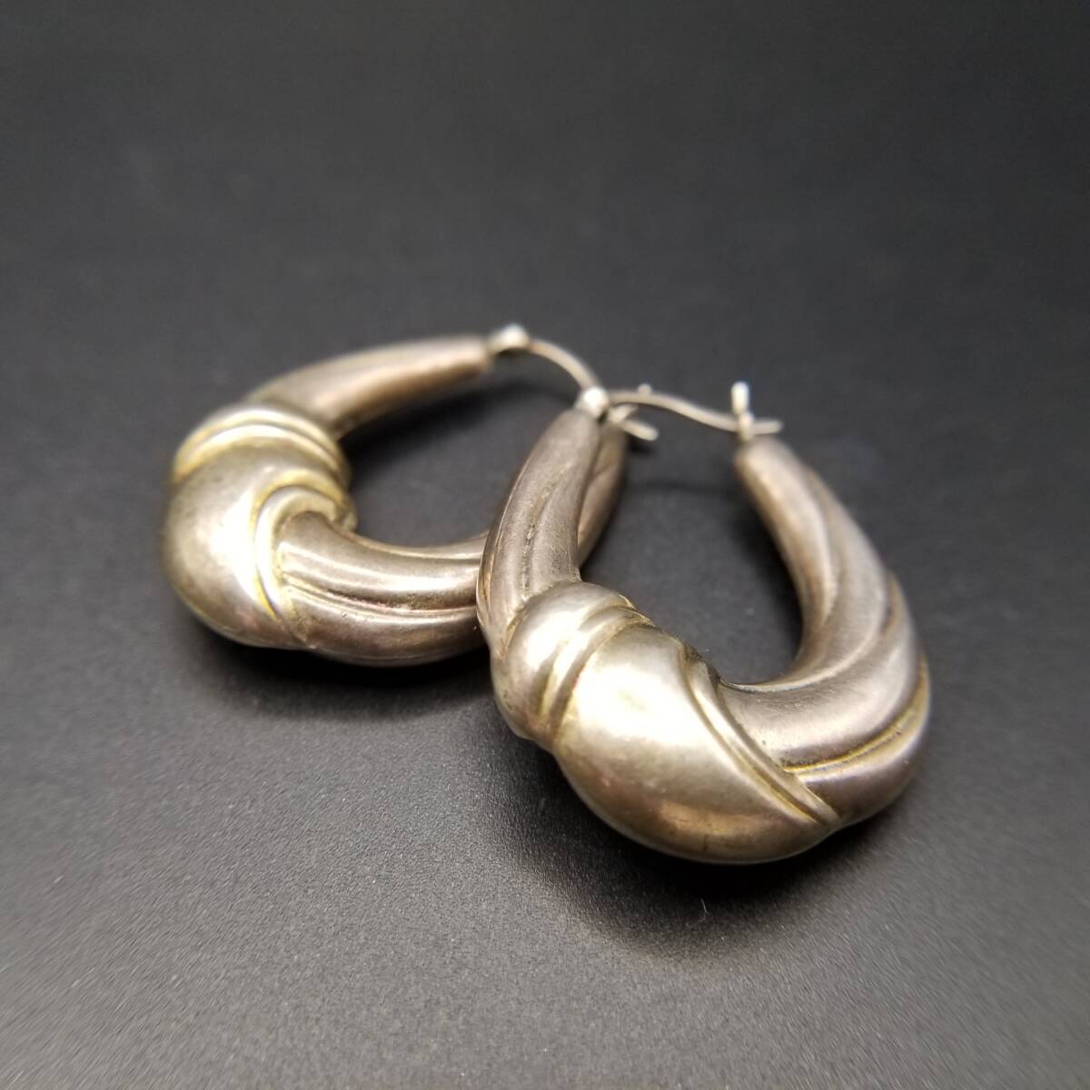 - クラシカル ドレープ ぷっくり感 925 シルバー ヴィンテージ フープ ピアス 銀 存在感 ステートメントジュエリー Y25-F
