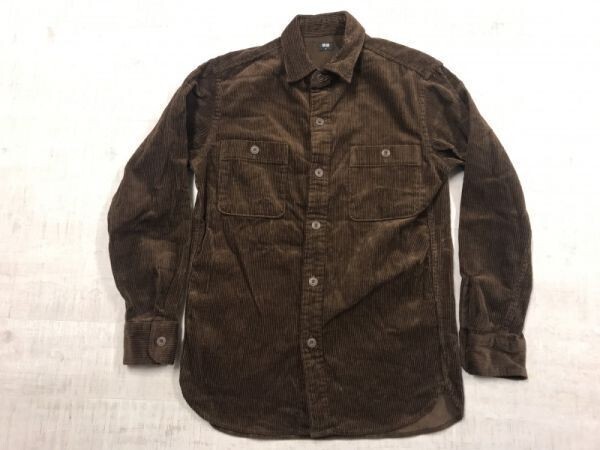 - ユニクロ UNIQLO オールド レトロ オーセンティック 古着 胸ポケット 太畝コーデュロイ 長袖ワークシャツ メンズ 綿100% S 茶色 ブラウン