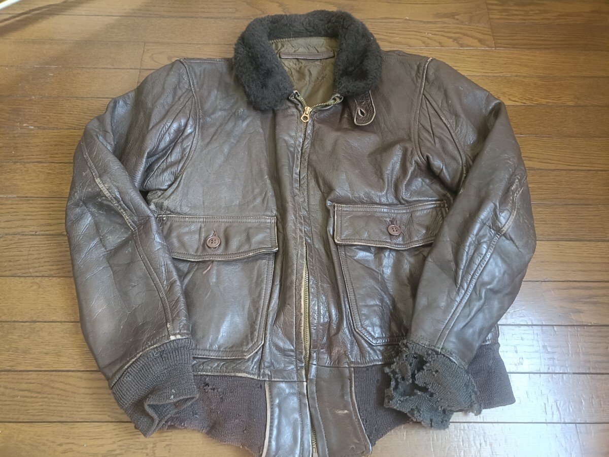 - 60s 70s G-1 フライトジャケット レザージャケット USN ビンテージ ミリタリー USA ゴートスキン 大戦