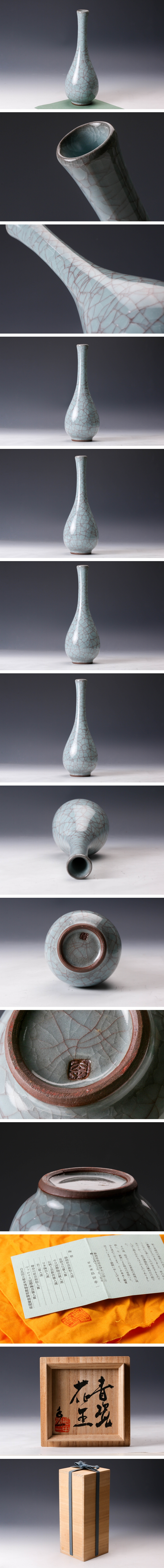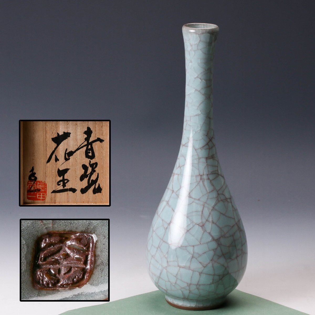 【佳香】島田幸一 青瓷花生 共箱 共布 栞 本物保証