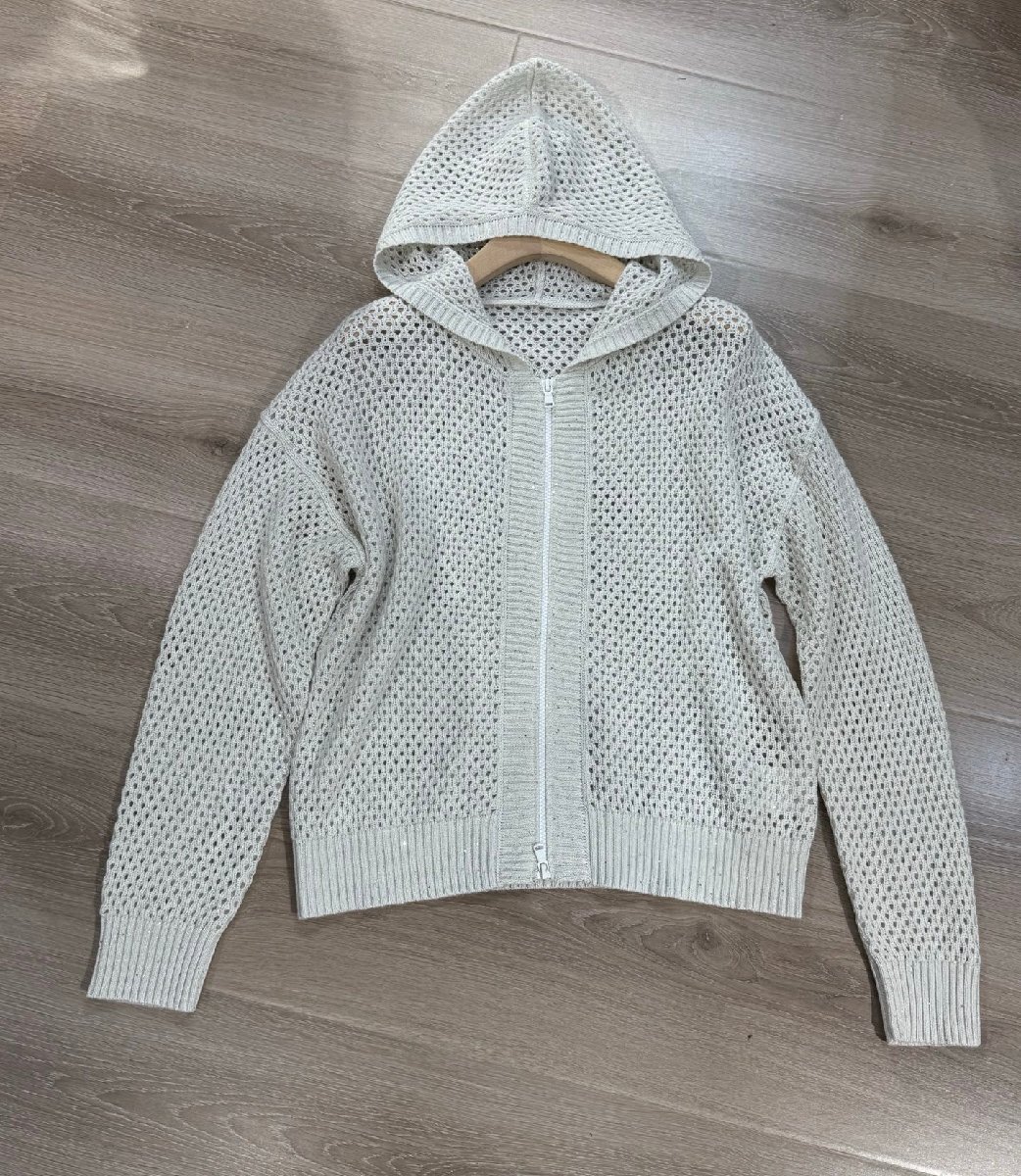 - ベージュL★送料無料【新品】★ブルネロクチネリ★レディース フード付き メッシュ編みジップアップ ニットカーディガン, 透かし,ウール混