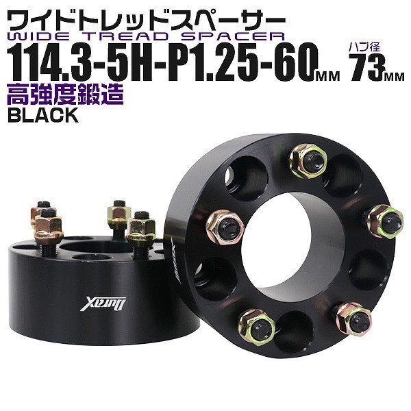 - Durax正規品 ワイドトレッドスペーサー 60mm 114.3-5H-P1.25-H73ナット付 黒 ホイール スペーサー ワイトレ ワイドスペーサー 2枚セット