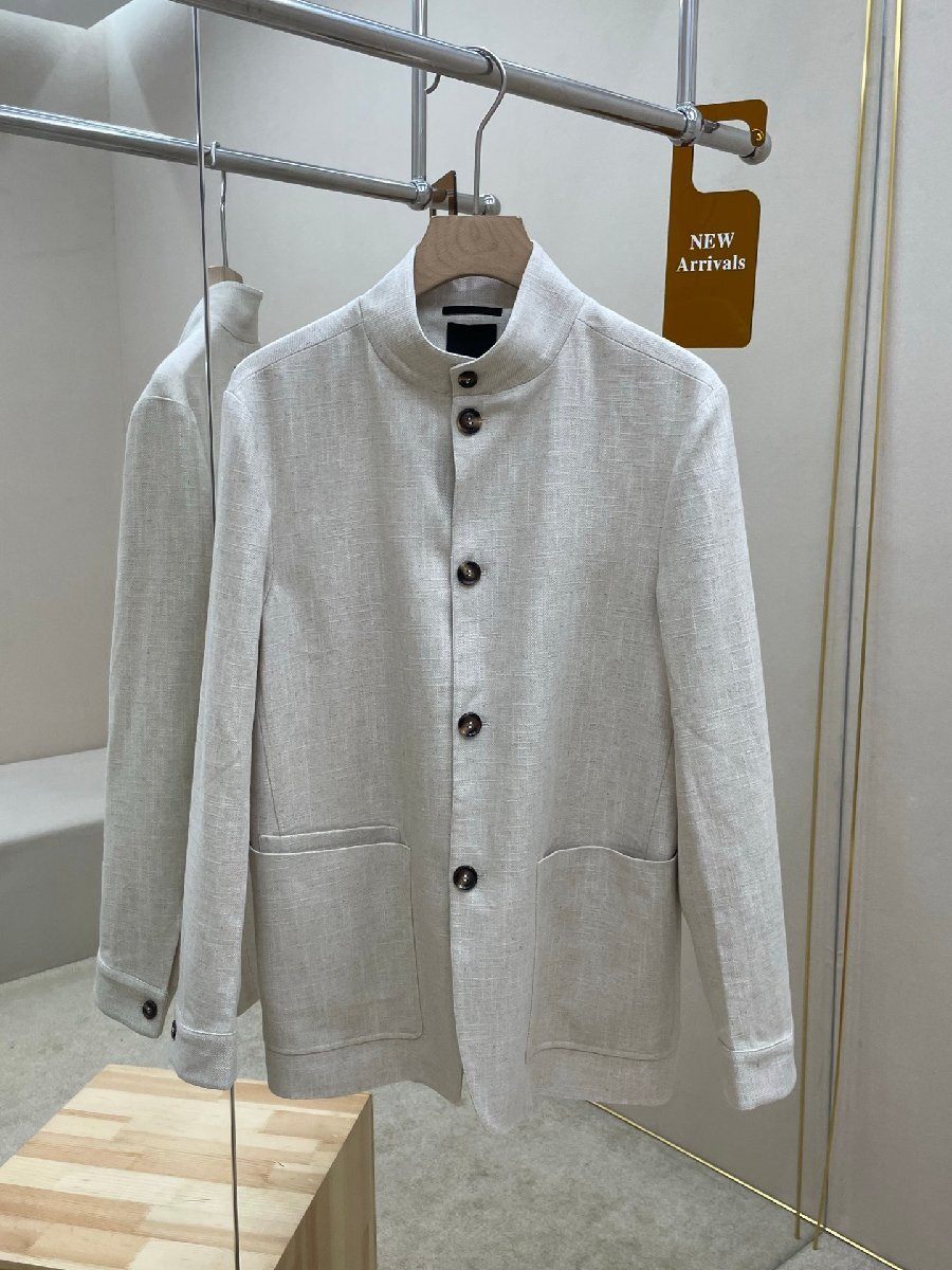 - サイズM★送料無料★BRUNELLO CUCINELLI★メンズリネンブレンド スタンドカラージャケット、ミニポケット付き