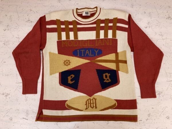 - Modigliani モディリアーニ 肩パッド入り 総柄 ジャガード コットンニット セーター メンズ コットン50% アクリル50% M ベージュ系