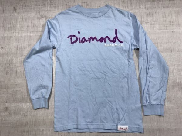> Diamond Supply Co ダイアモンドサプライ ストリート スケート ヒップホップ ロンT 長袖Tシャツ カットソー メンズ ロゴプリント S 水色