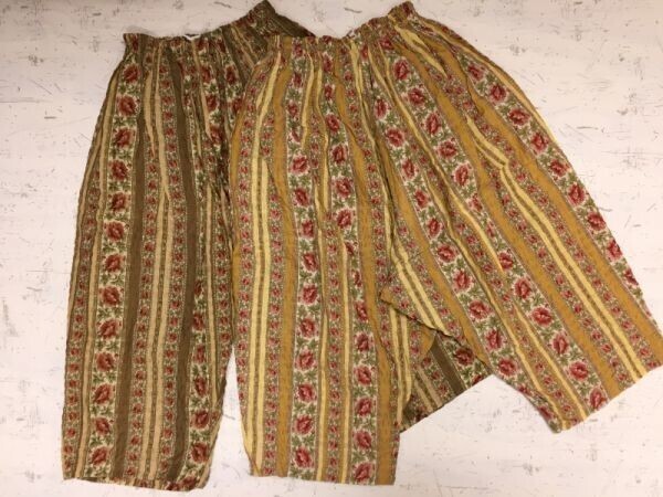 - レトロ アンティーク調 フォークロア ストライプ クレープ地 イージーパンツ ハンドメイド色違い2点セット まとめて 福袋 レディース