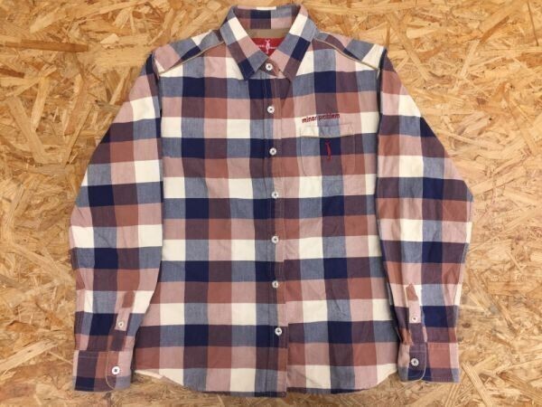 > minor problem マイナープロブレム 長袖シャツ レディース ブロックチェック柄 ロゴ刺繍 カジュアル 2 ベージュ