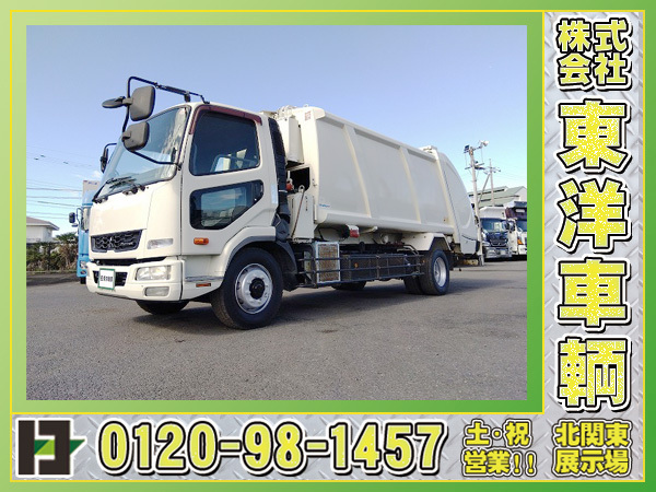 - 13726[塵芥車] H24 ファイター 新明和製プレス式 自重計&連続スイッチ付 容量12.2立米 積載5.7t 増トン車 走行34.6万km