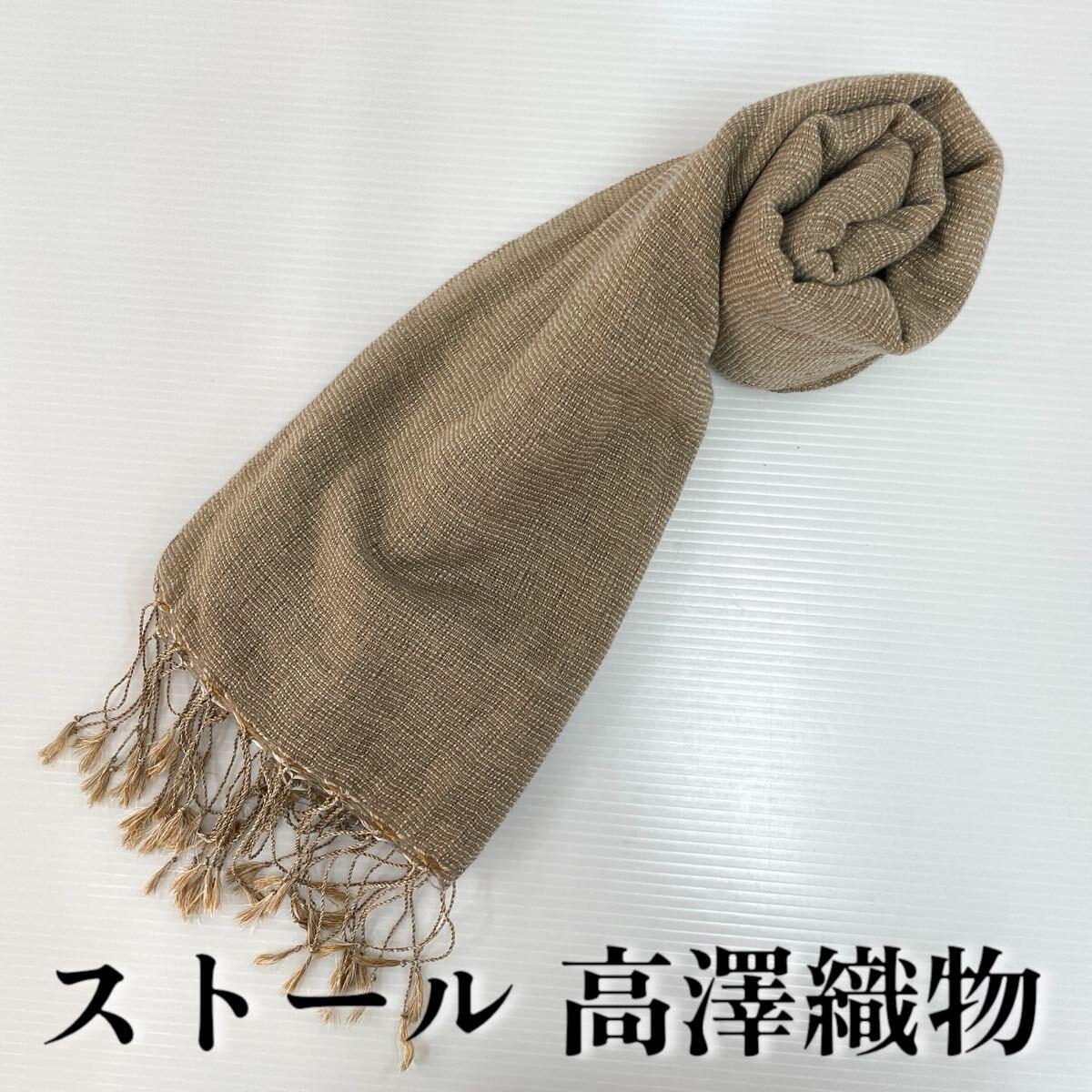 > 【ストール 高澤織物】未使用 カシミヤ 絹 秋冬 スカーフ ショール 肩掛け 膝かけ 国産 日本製 防寒 クリーム金茶色 #0263-790Z10