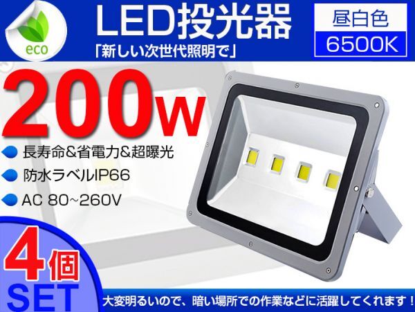 > 即納!激安 送料込 4個set 200W LED投光器 2000W相当 広角130° 3mコード付 昼光色 6500K PSE取得 AC 85-265V 看板 屋外 ライト 作業灯 fld
