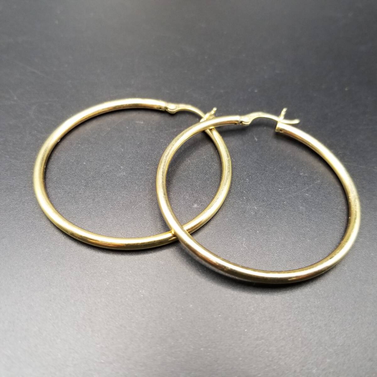 - VE刻印 シンプル 細幅 大ぶり ラウンド 925 シルバー フープ ピアス 銀 ゴールドトーン スタイリッシュ 定番 存在感 Y25-G