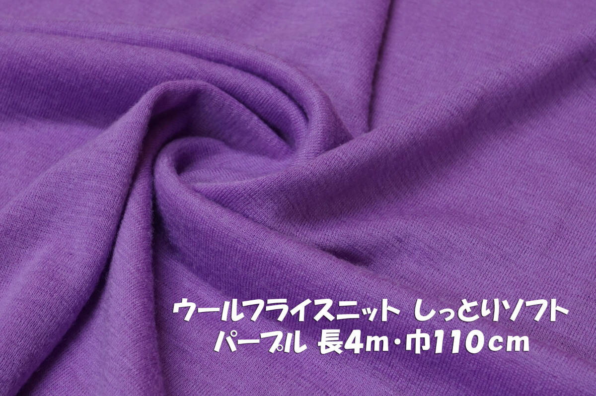 - ウールフライスニット しっとりソフト パープル長4m巾110㎝ インナー 長袖 タートルネック