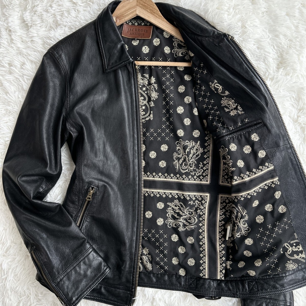 > 希少Lサイズ◎ JACK ROSE VINTAGE ジャックローズ 裏地総柄 シングルライダース ゴートレザージャケット 山羊革 メンズ 革ジャン やぎ革