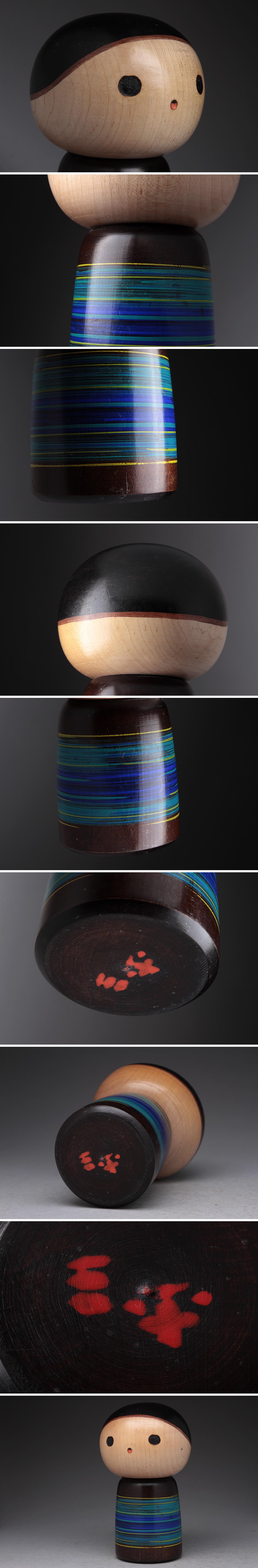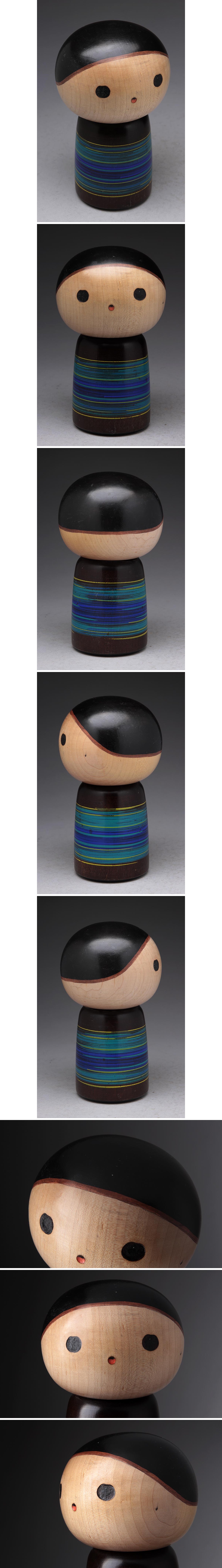 > JP825 【山中三平 作】創作こけし・三平こけし 童子「男の子」置物 高15cm 床置 床飾 伝統工芸 郷土民芸 木人形