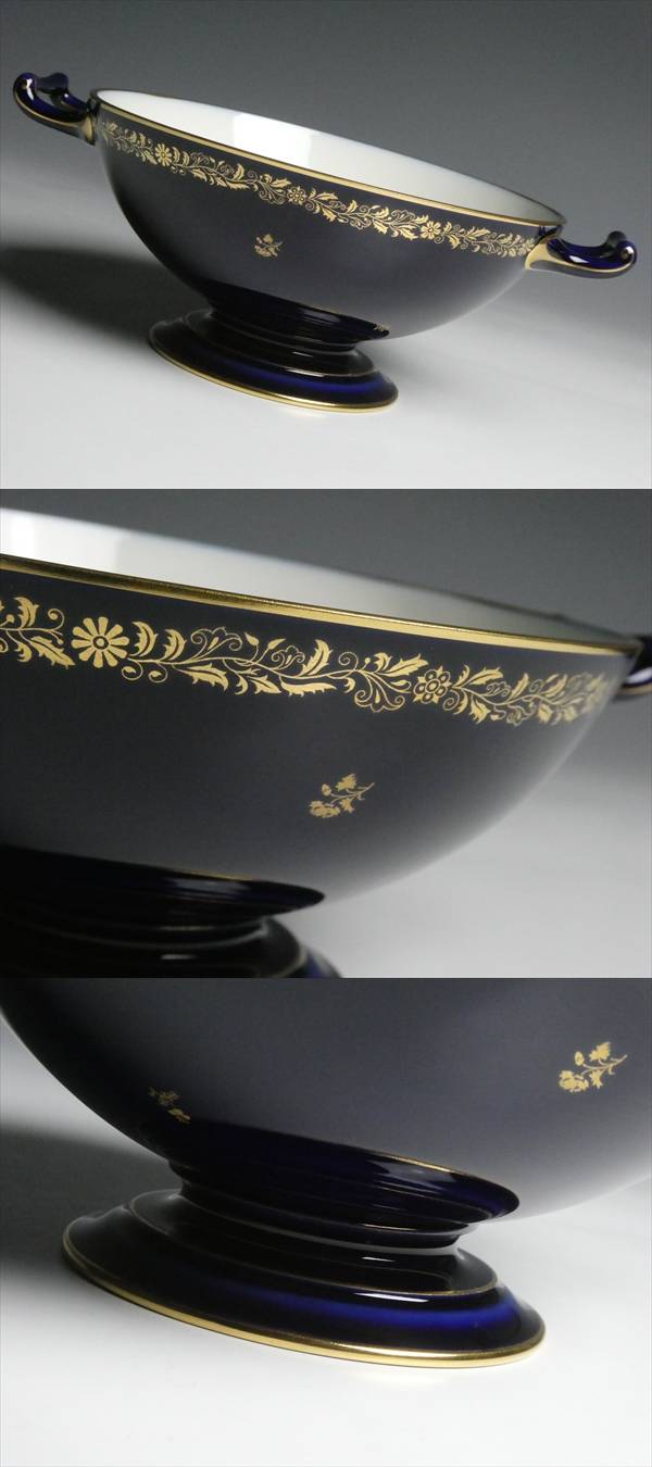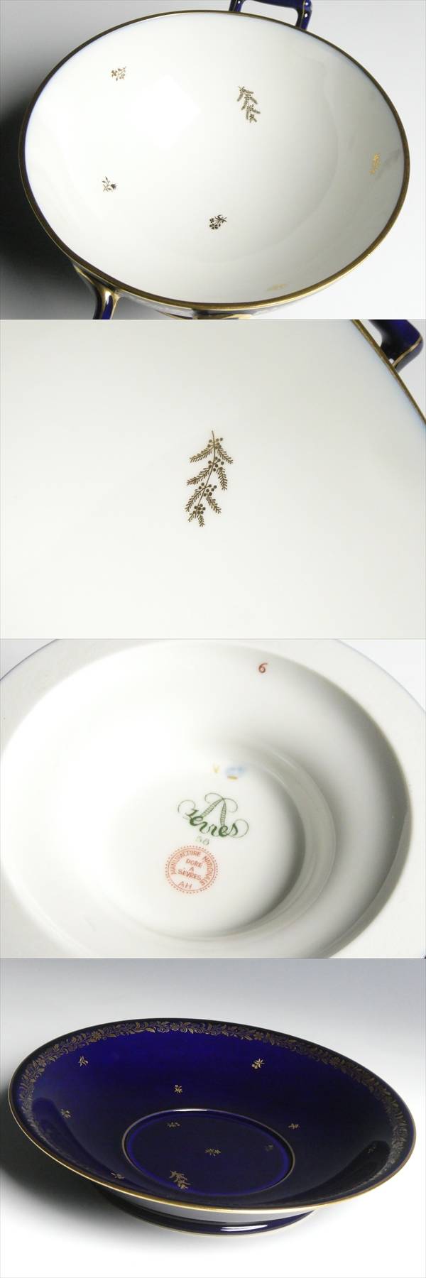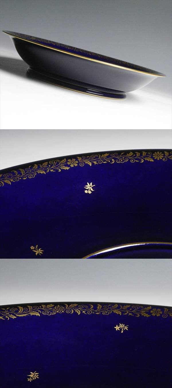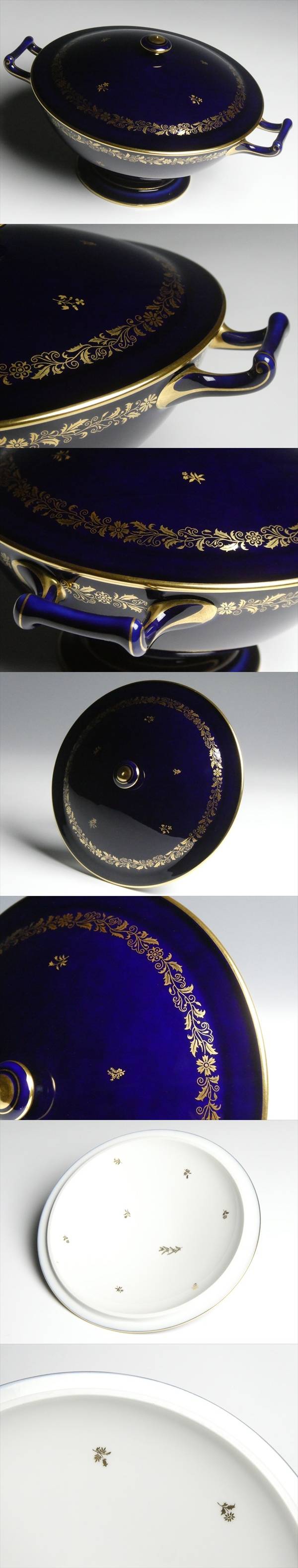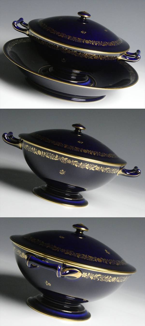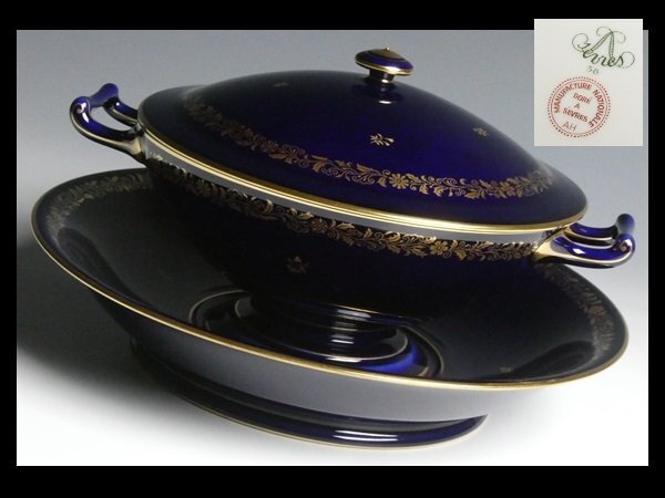 - セーブル 西洋陶磁器 最高峰ブランド SEVRES ファットブルー 金彩 アラベスク 小花絵 スープチューリン 受け皿付 蓋付ボウル 蓋物 n708