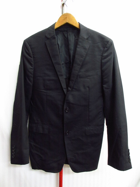 > バーバリーブラックレーベル テーラードジャケット メンズL 黒ストライプ柄ジャケット ブレザー スーツ ビジネス フォーマル 10244