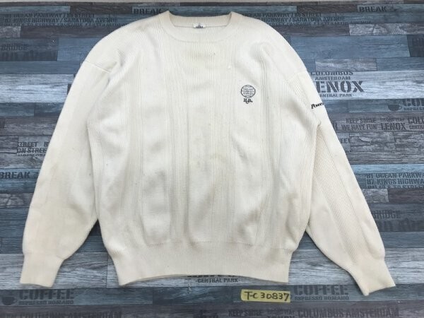- H&B メンズ ロゴワンポイント刺繍 ニットカットソー 毛・アクリル LL アイボリー