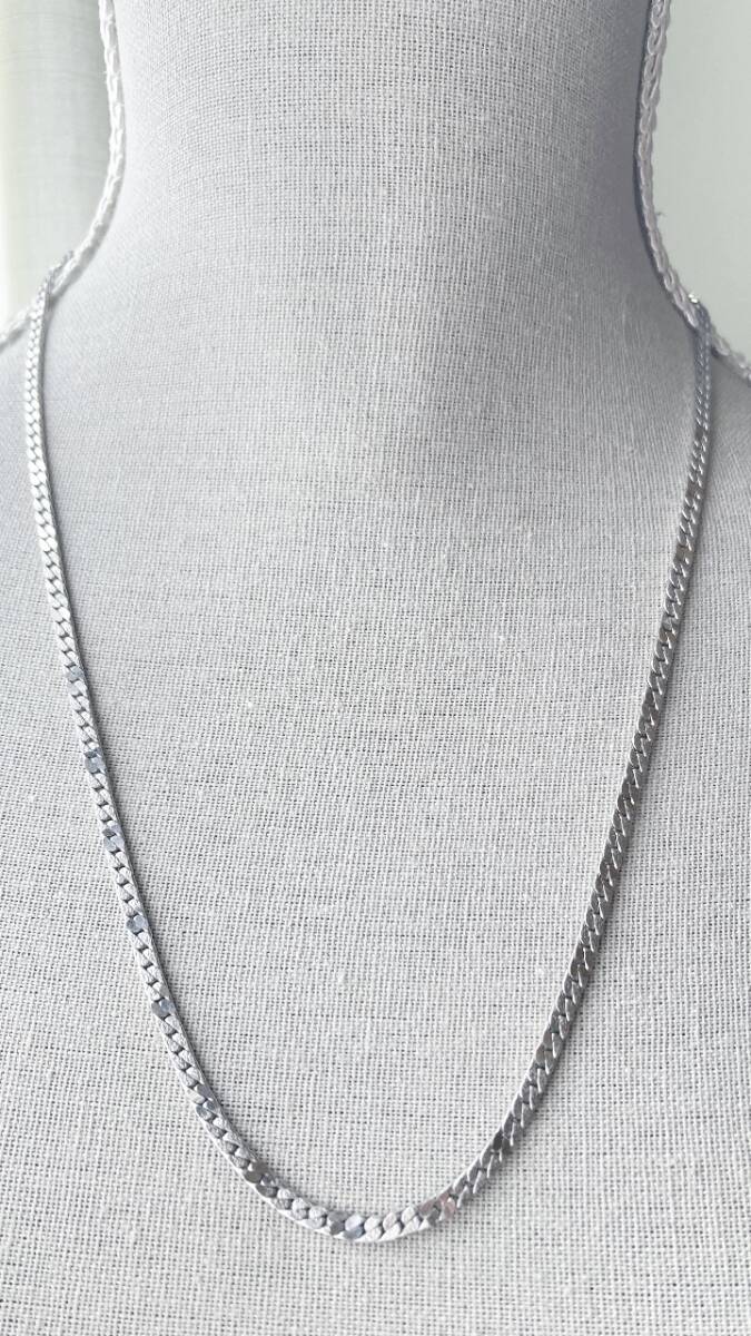 - 送料無料■ネックレス ミディアムロング シルバートーン 平たいチェーン メンズ レディース 美品■Vintage jewelry accessoriesF0360