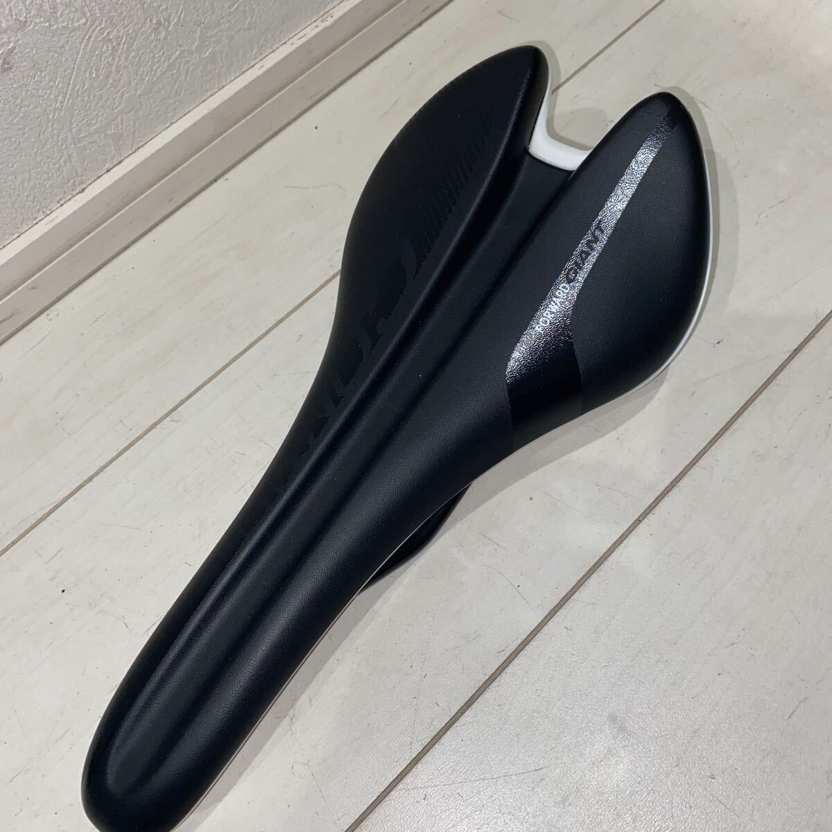- ★格安スタート★ほぼ未使用★GIANT ジャイアント CONTACTサドル BLK/WHT 幅狭め約13cm ロゴ入純正 重量300g ロード用★売り切り★