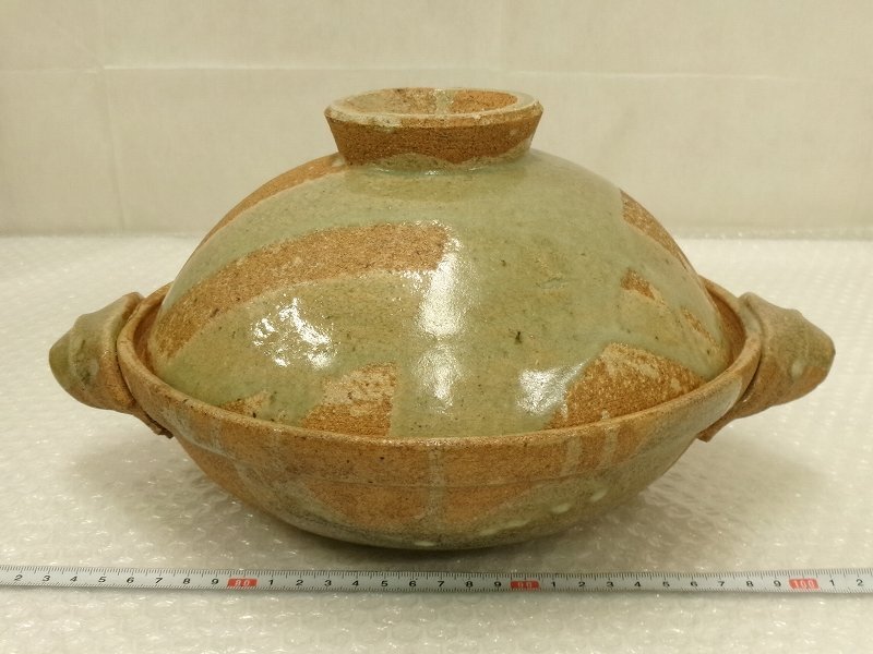 P6382 灰釉 土鍋 調理鍋 陶製 両手鍋 蓋付鍋拍卖