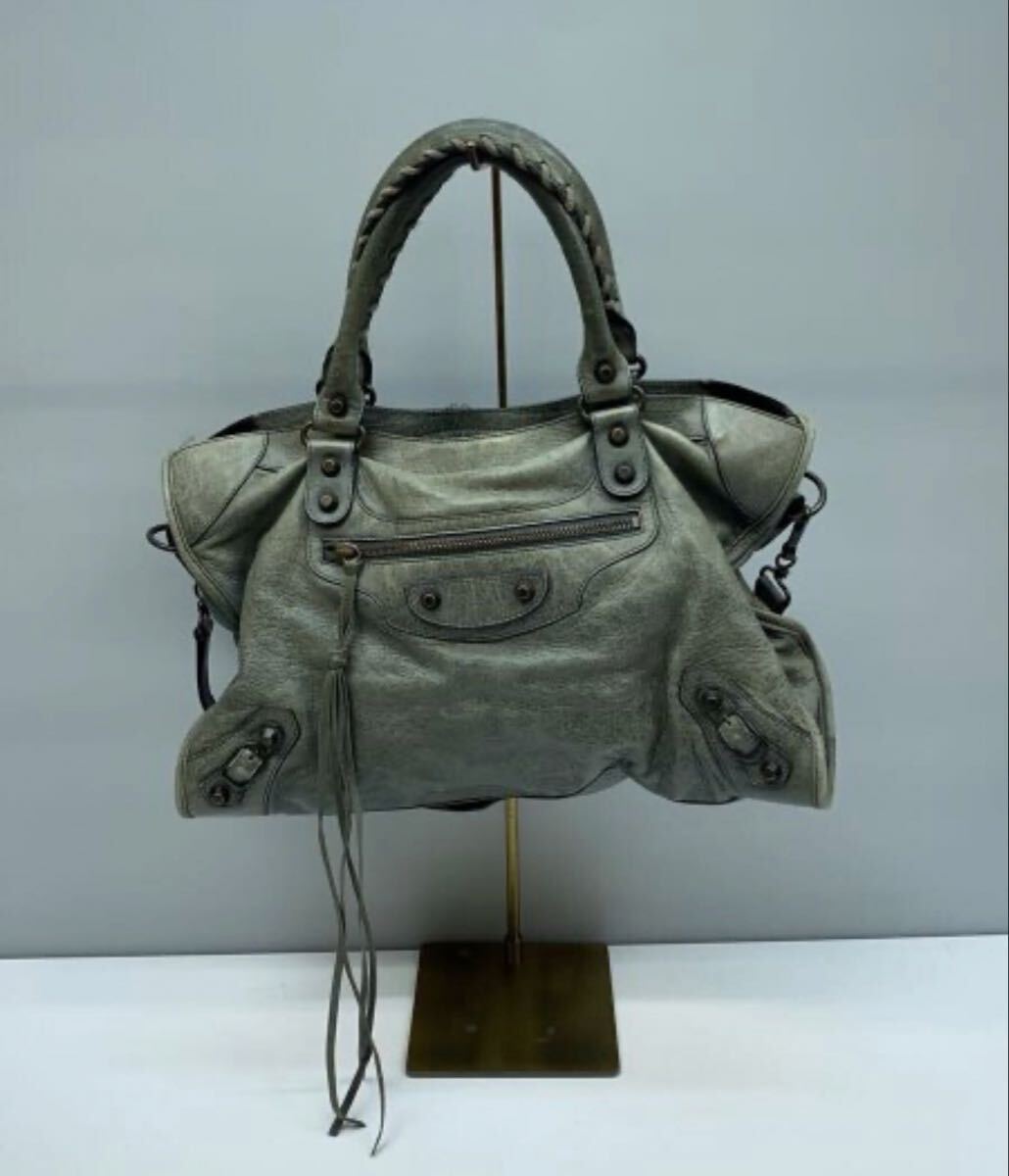 - 【美品・レトロ】BALENCIAGA バレンシアガ シティバッグ クラシック モーターバッグ グレー系 イタリア製 レザートート 現状品 プレミアム