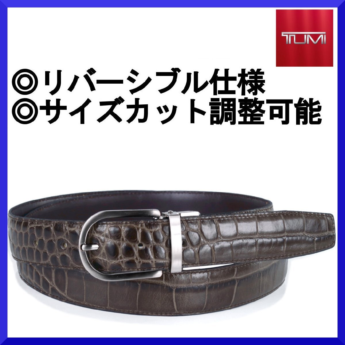 > 新品本物トゥミTUMI【装い華◎クロコダイル型押し本革レザー】リバーシブル!!カット長さ調節OK!!ベルト/メンズ/ビジネス/デニム/【38/95】