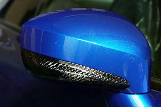 > 「RSW」GT-R(R35)MY07~MY15用ドアミラーアンダーパネルx左右(綾織りブラックカーボン/クリア塗装仕上げ)
