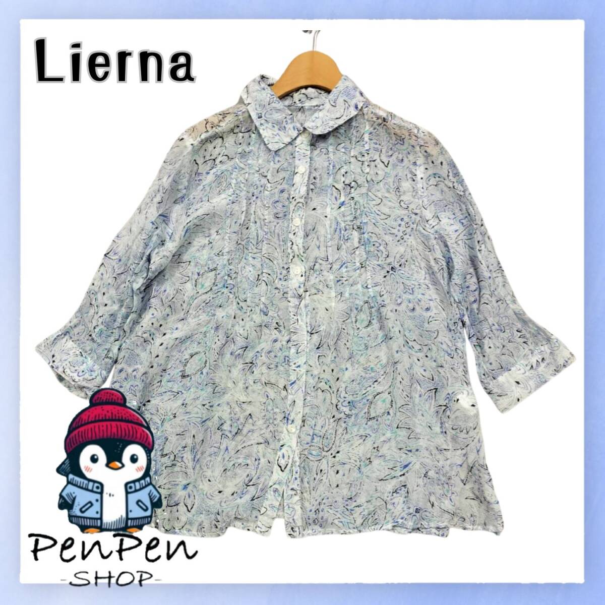 - Lierna リエルナ レディース シャツ ブラウス 水色 ペイズリー柄 綿麻混 七分袖 前開き Mサイズ相当 涼やか 上品 袖止めあり 軽やか