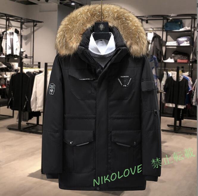 > ☆新品 ブラック DCKMANY ダウンジャケット ミドル ファー付き 撥水 暖かい 防風 防寒 厚手 冬 ノーアイロン アウター メンズ