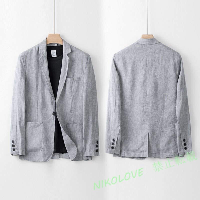 - ☆新品 リネンジャケット メンズ ワンボタン テーラードジャケット 100%麻 ブレザー スリム 清涼 長袖 無地 通勤 カジュアル グレー