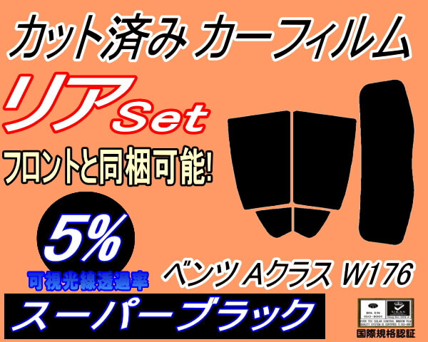 > カーフィルム スーパーブラック カット済み リアセット ベンツ Aクラス W176 (s) スモーク ガラスフィルム セット リヤー A180 A250 A45