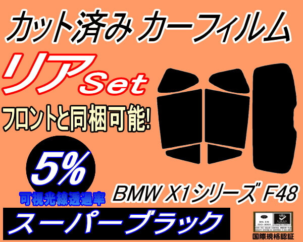 - カーフィルム スーパーブラック カット済み リアセット BMW X1 F48 (s) スモーク ガラスフィルム セット リヤー サイド HS20 HS15 BMW