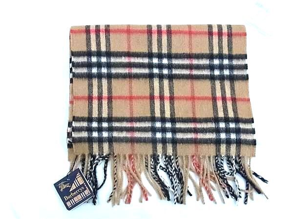 > 1円 ■新品同様■ Burberrys バーバリーズ ノバチェック カシミヤ100% フリンジ マフラー 防寒具 レディース メンズ ベージュ系 FM4326