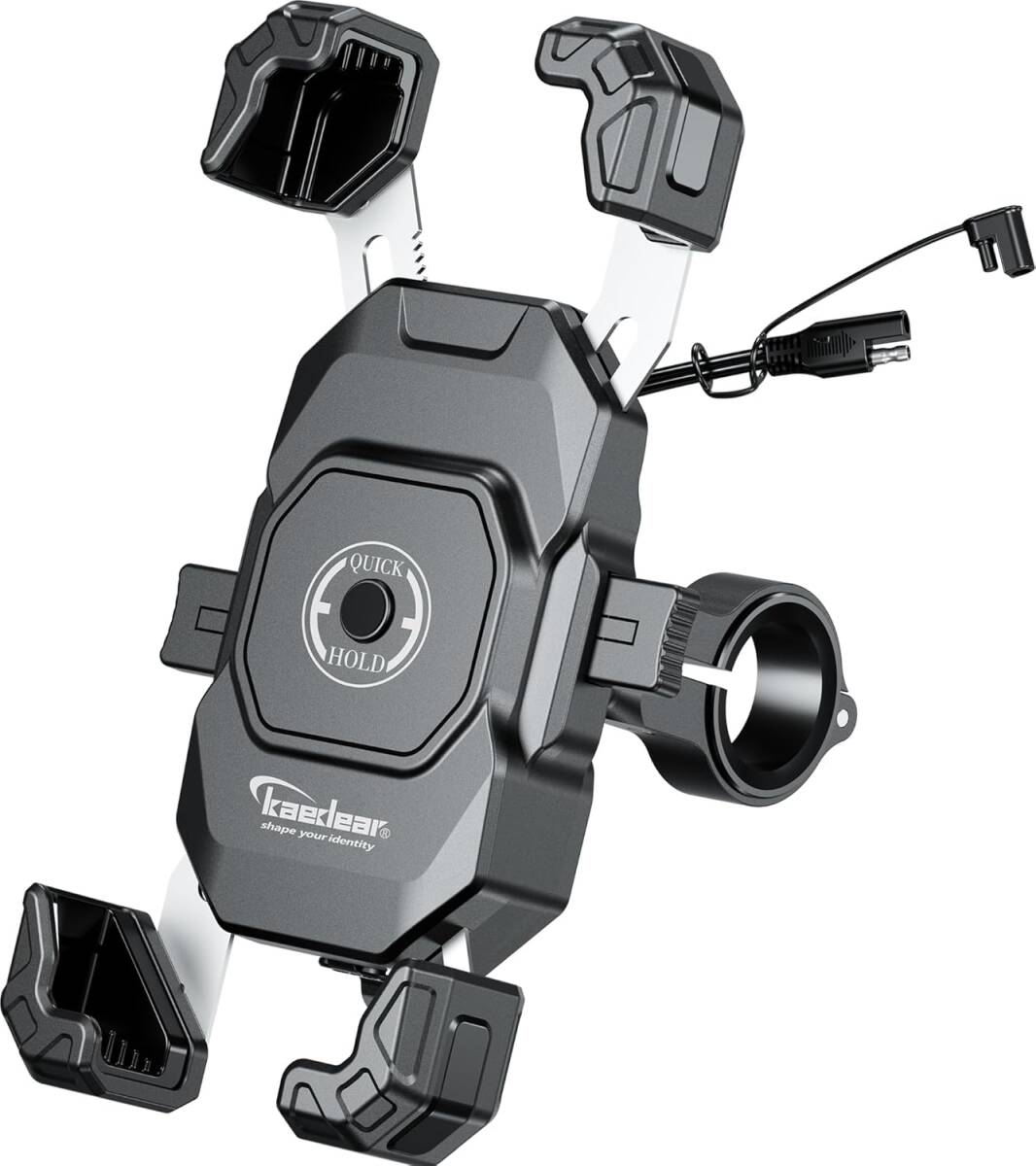 - 【新品】 Kaedear(カエディア) バイク スマホホルダー QI ワイヤレス充電 防水 USB電源 携帯ホルダー