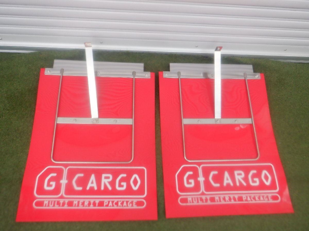 > 新車外し 純正 いすゞ ギガ Gカーゴ G-CARGO マッドガード 泥除け 左右 ステー ブラケット レッド サイズ 約81.5㎝×約61㎝ m-25-10-630