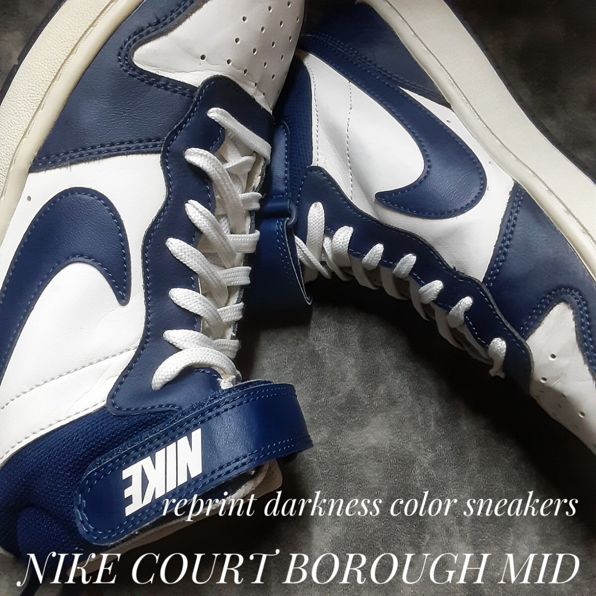 - 最値!希少22年製!復刻ロイヤルカラー!ヘリテージスタイル!ナイキ コートバーロウ ミッド高級スニーカー!ホワイト×ネイビー!白紺 25cm相当